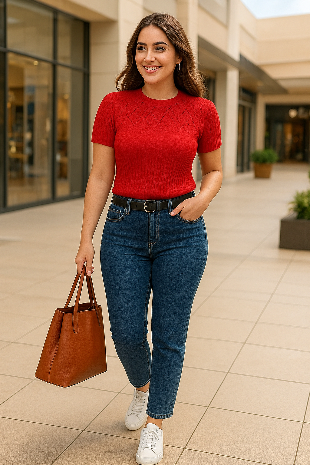 Blusa Tricô Feminina Gola Alta Vitrine Collection Manga Curta Vermelha