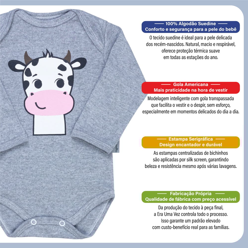 Body Manga Longa Bebê Bichinhos Carinhosos