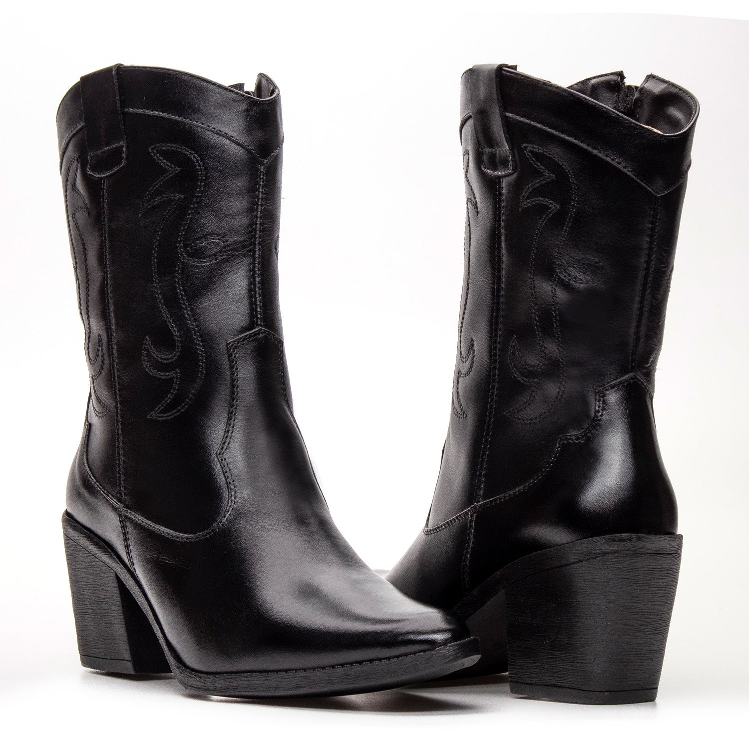 Bota Texana Feminina Bárbara Barros Couro Legítimo Preto Cano Médio