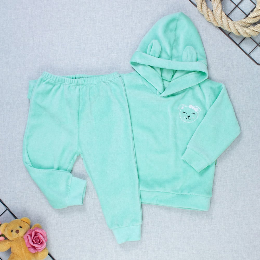 Conjunto Plush Bebê Menina Blusa Com Capuz E Calça