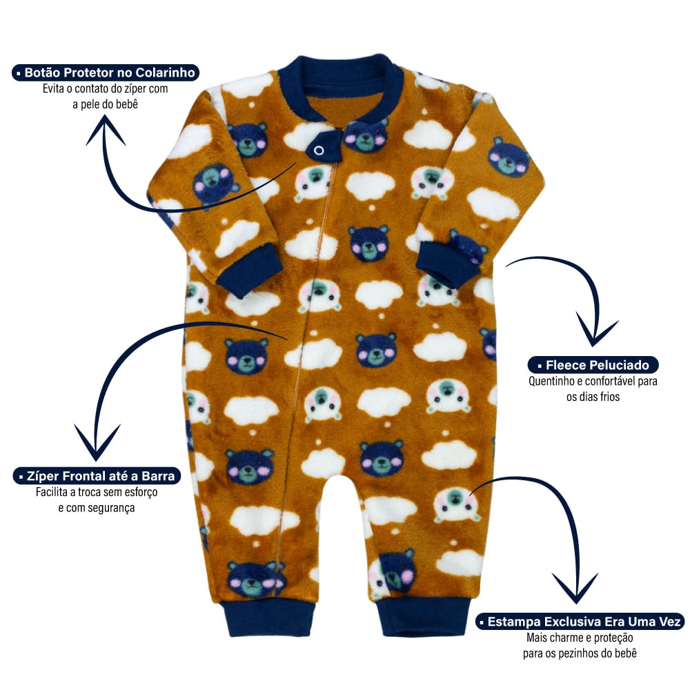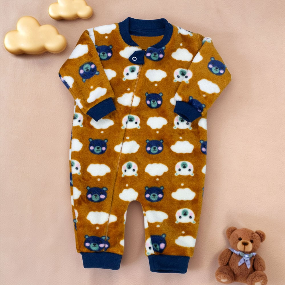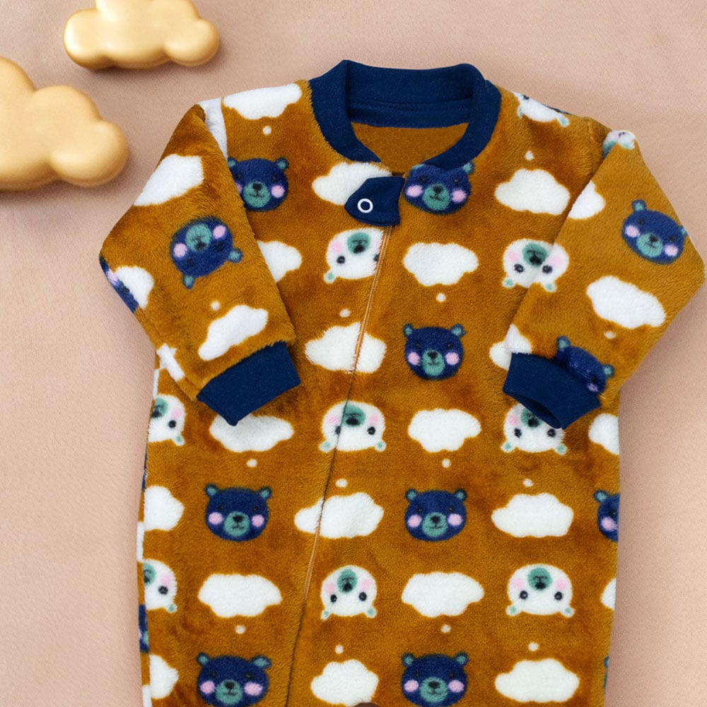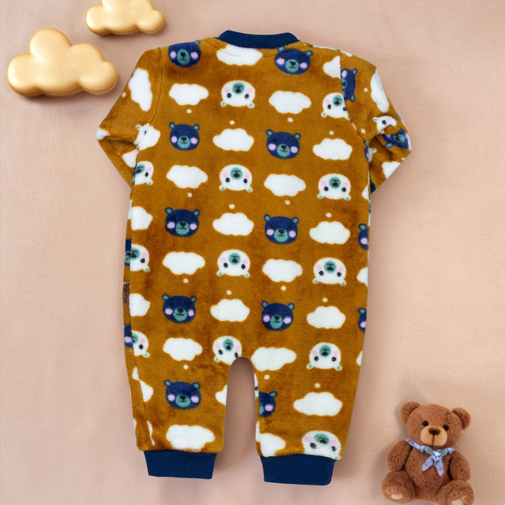 Macacão Peluciado Bebê Menino Ursinhos Nas Nuvens Caramelo